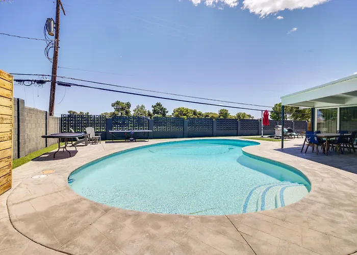 De gesitueerde in Las Vegas 3 Mi To Strip Mid-Century Gem With Hot Tub In Vegas Villa Las Vegas is op 15-minuten rijden van het Congrescentrum Mandalay Bay gelegen en beschikt over een zwembad, een sauna, voor een ontspannen verblijf.